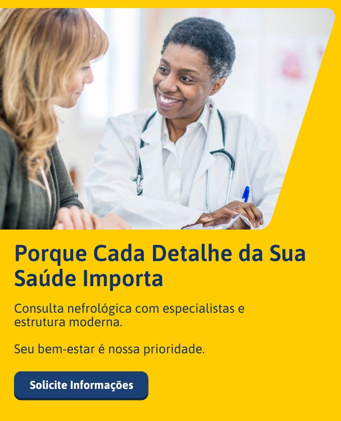 Lembre-se: o cuidado preventivo é sempre o melhor caminho, por isso oferecemos atendimento com nefrologista de ponta para indicar os exames e tratamentos necessários.